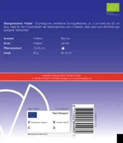 Besonders feine, dunkelgrüne Bohnen ( Sortierung < 6,5 mm Durchmesser), mit 12 – 14 cm langen, geraden Hülsen.