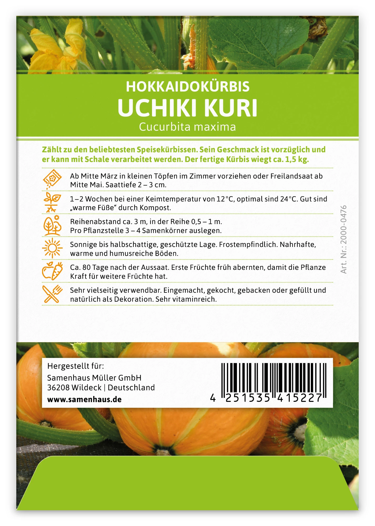 Zählt zu den beliebtesten Speisekürbissen. Sein Geschmack ist vorzüglich und er kann mit Schale verarbeitet werden. Der fertige Kürbis wiegt ca. 1,5 kg.