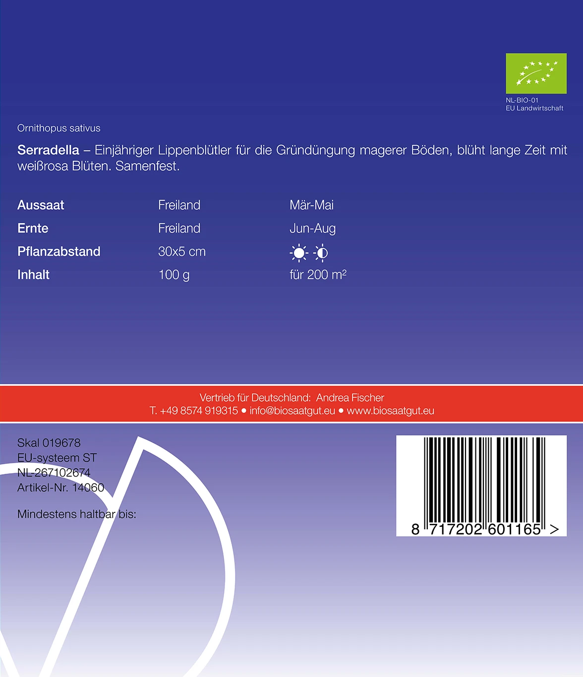 Einjähriger Lippenblütler für die Gründüngung magerer Böden, blüht lange Zeit mit weiß rosa Blüten. Samenfest.