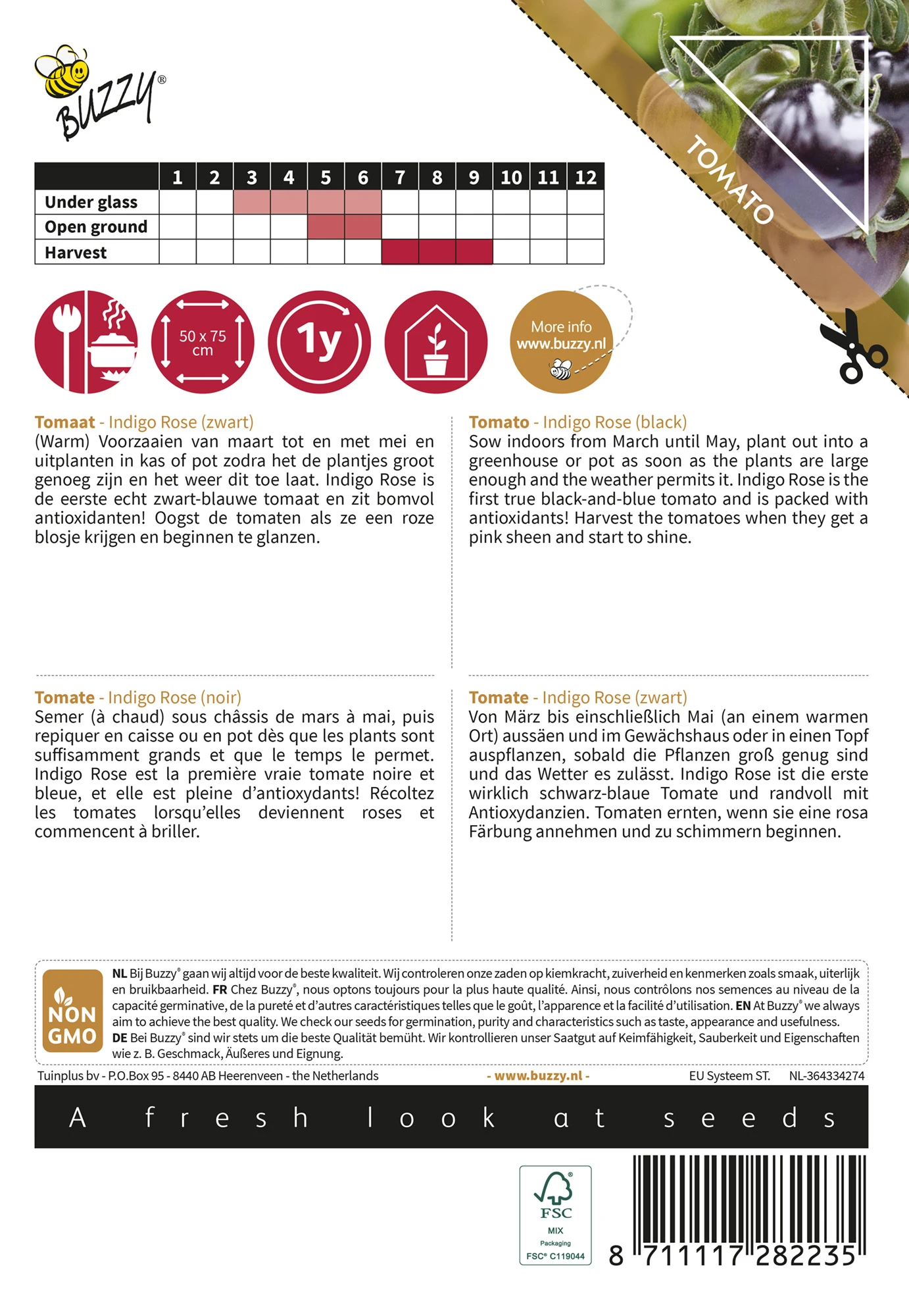 Von März bis einschließlich Mai (an einem warmen Ort) aussäen und im Gewächshaus oder in einen Topf auspflanzen, sobald die Pflanzen groß genug sind und das Wetter es zulässt.